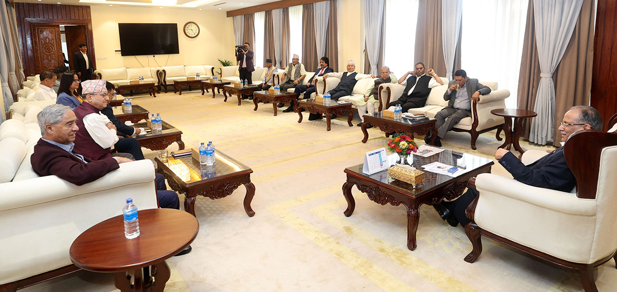 सोहि विषयमा छलफल गर्न बालुवाटारमा बैठक बोलाइएको हो। सत्तारुढ दलको बैठकमा प्रधानमन्त्री एवम् नेकपा माओवादी केन्द्रका अध्यक्ष प्रचण्ड, कांग्रेस सभापति शेरबहादुर देउवा, जसपा अध्यक्ष उपेन्द्र यादव, नेकपा एसका उपाध्यक्ष राजेन्द्र पाण्डे, लोसपा अध्यक्ष महन्थ ठाकुर, नागरिक उन्मुक्तिकी अध्यक्ष रञ्जिता श्रेष्ठ, जनमत पार्टीका अध्यक्ष सिके राउत लगायतका शीर्ष नेता सहभागी छन्।